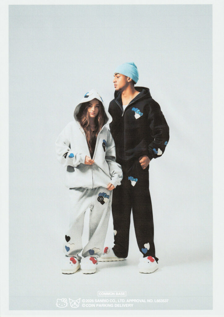 ぬいぐるみ(各150体限定)やぬいぐるみキーホルダーをはじめ、COIN PARKING DELIVERYのシグネチャーワークであるパッチ表現と、ハローキティを象徴するリボンモチーフを組み合わせたコラボアートワークを配したスウェット、Tシャツ、CAP、ビーニー、ナップサックなど、幅広いアイテムがラインナップ。